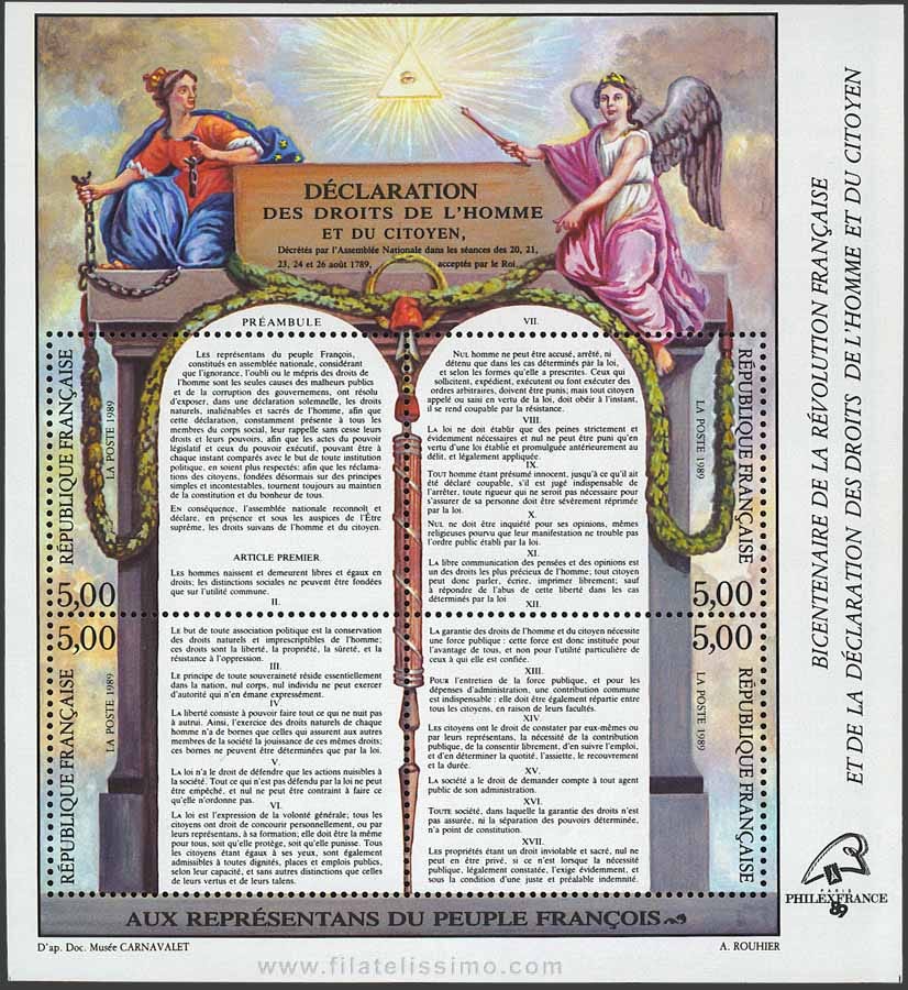 This is a French commemorative stamp celebrating the bicentennial of the French Revolution. It is essential to begin understanding the meaning of the symbols around us, and we have a clear example here. The French government has used various symbols associated with the Illuminati tradition to commemorate the French Revolution. At the top, we can see a pyramid and the all-seeing eye. Any other image could have been chosen, such as soldiers celebrating the event, but they opted for this one. Undoubtedly, on the streets we pass through, we frequently find Masonic symbols on buildings, monuments, statues, and other places, which invites us to reflect on their presence in our daily lives.